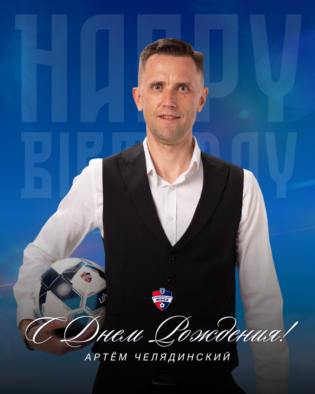 Коллектив футбольного клуба «Минск» поздравляет Вас с этим замечательным событием. Желаем Вам крепкого здоровья, неиссякаемой энергии, оптимизма и новых достижений во главе «горожан». Пусть каждый день приносит Вам радость, а Ваши усилия всегда венчаются успехом и новыми победами!