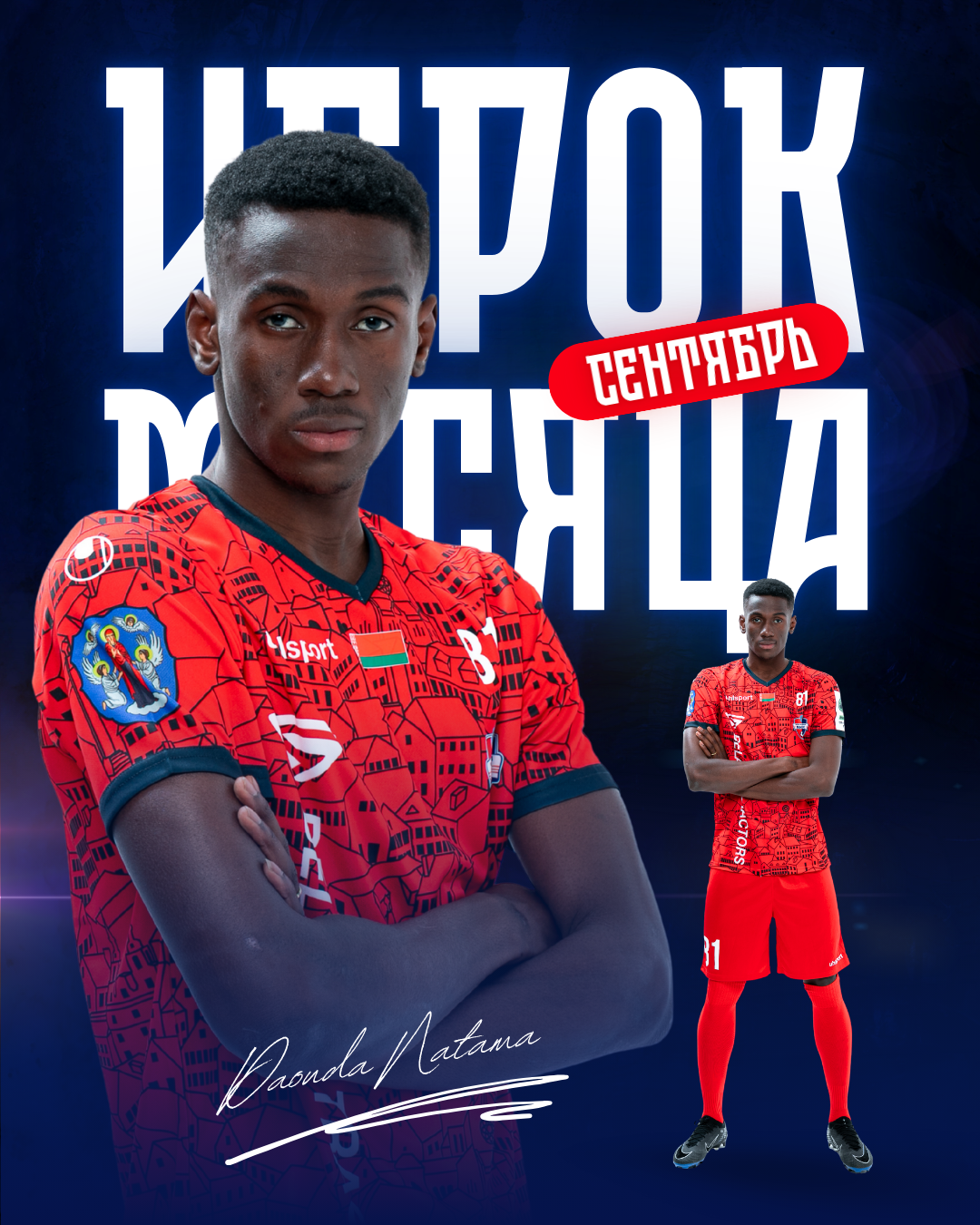 Победителем номинации стал нападающий Даоуда НАТАМА, собравший 48 процентов голосов. Напомним, что форвард из Буркина-Фасо стал автором победного гола в матче 21-го тура против минского «Динамо», у которого «горожане» не выигрывали с 2020 года, и это была всего лишь пятая победа за все время участия в чемпионатах страны у «Минска» над «бело-гоубыми».