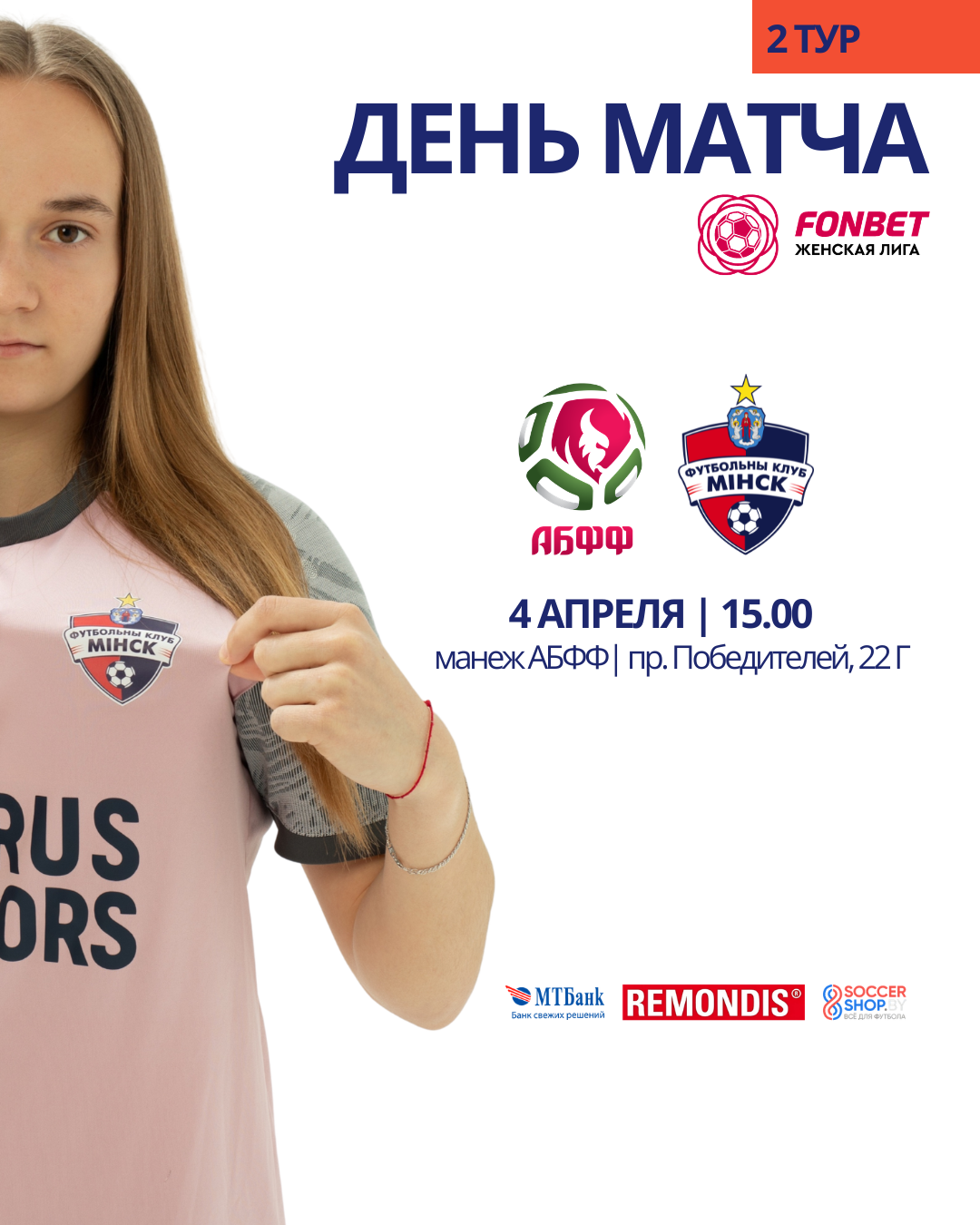 Сегодня, в субботу, 4 апреля пройдет матч 2-го тура чемпионата FONBET – Женская лига 2026 года, между командой АБФФ WU-19 и «Минском».