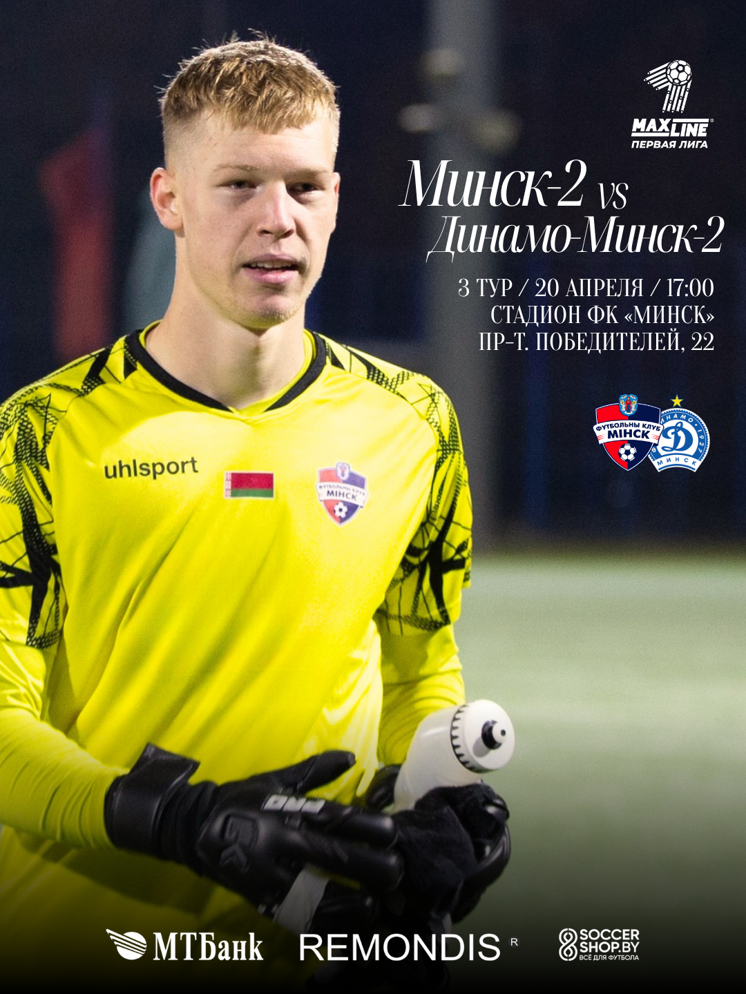 В понедельник, 20 апреля, команда нашего клуба «Минск-2» проведет матч 3-го тура «Maxline – Первая лига 2026 года» против «Динамо-Минск-2».